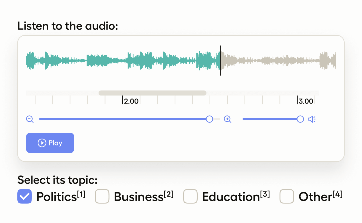 <Header value="Select the topic of the audio clip"/>